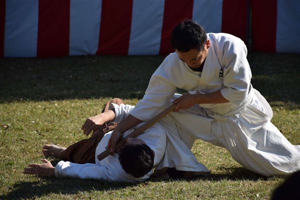 無手の体術は無論の事、剣(小太刀)を持てば剣術、杖を持てば杖術、槍を持てば槍術と